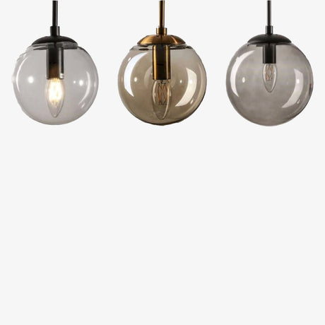 Suspension design en verre en forme de boule avec éclairage LED – finitions rose gold ou noir