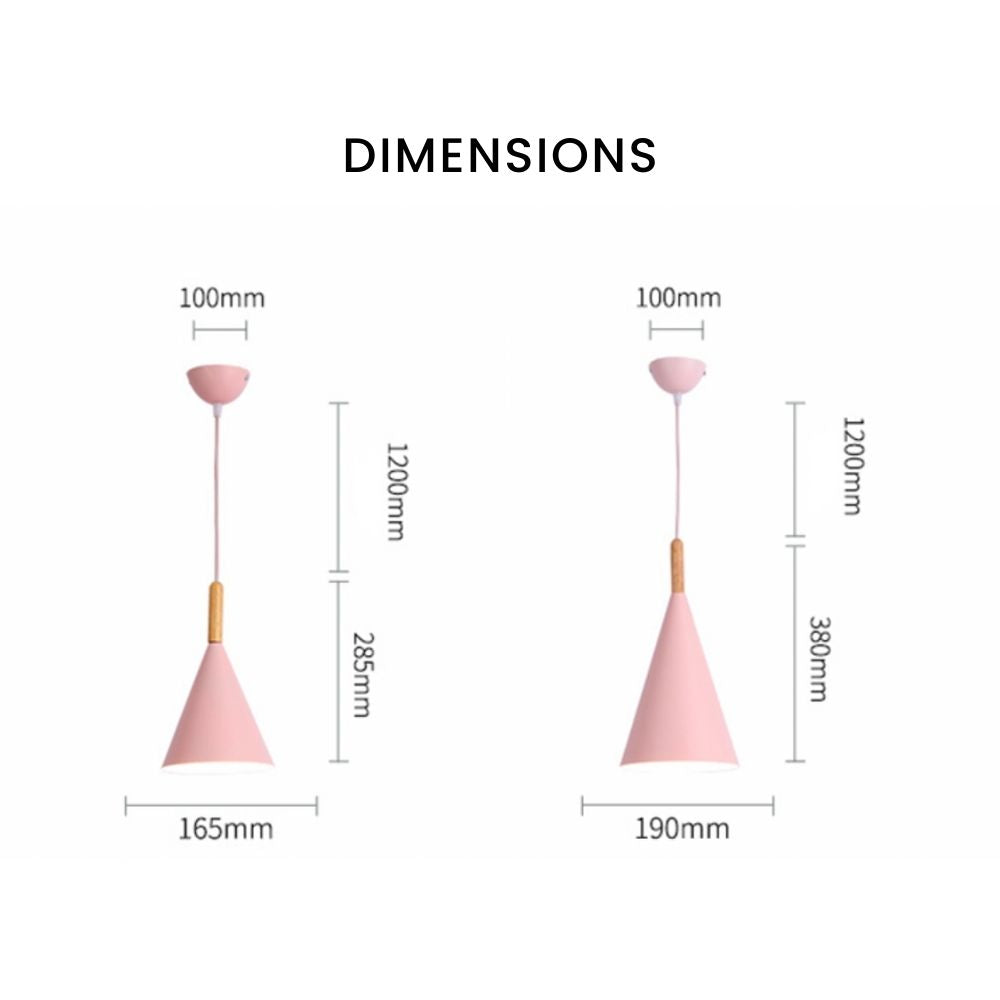 Suspension conique en métal coloré avec tige en bois – modèle Bar